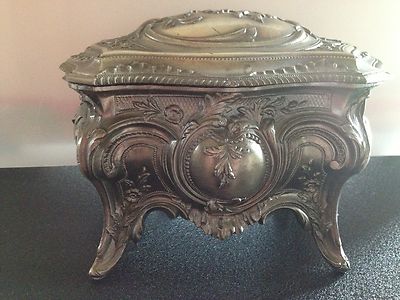 PERFECT VICTORIAN VINTAGE JAPAN SILVER METAL ART DECO JEWELRY HEAVY DRESSER BOX