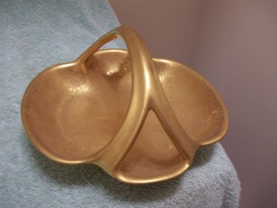 Title (ebay affiliate link): Vintage Wheeling Decorating Company,Porcelain Gold Basket/ Candy Dish