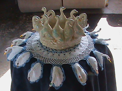 Title (ebay affiliate link): Antique/Vintage Goose Planter with Unique Matching Goose Doily