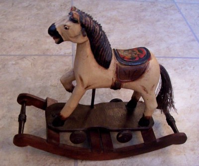 Small Vintage Rocking Horse with Wheels...Hand Carved