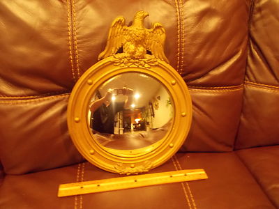Title (ebay affiliate link): RARE 13"1930S BULLS EYE-CONVEX GLASS WOOD&GESSO EAGLE SAMPLER SIZED WALL MIRROR