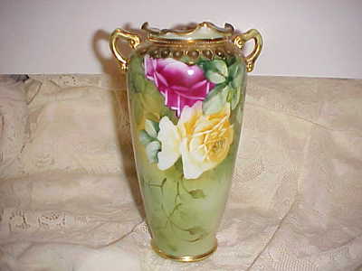 Antique Bavarian Roses Nippon Ruffled Top Vase, Very Gorgeous!