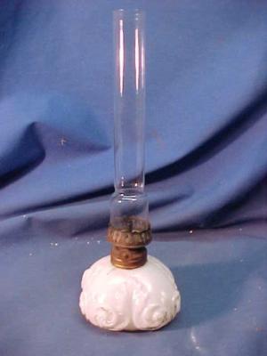 19th C MINIATURE MILK GLASS Pattern OIL LAMP
