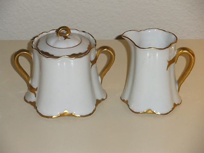 O.&E.G. Royal Austria Sugar & Creamer 1800's Gold Trim
