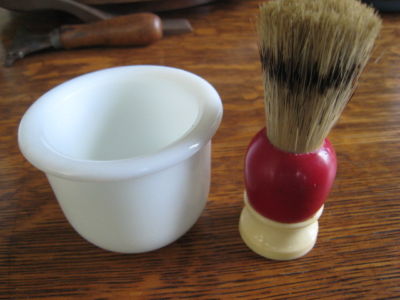 Vintage Men's MIlk glass SHAVING CUP and BRUSH