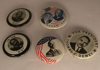 Title (ebay affiliate link): Truman Cleveland Coolidge Dewey set of 5 Repro Campaign Button