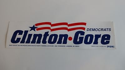 Title (ebay affiliate link): Presidential Race Clinton Gore Bumper Sticker from Michigan