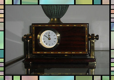 ART DECO SHELF MANTEL CLOCK CHERRY WOOD METAL