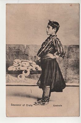 Title (ebay affiliate link): 1911 Souvenir Of Crete, Greece, Boy Selling Koulouria, Occupational, Nice!