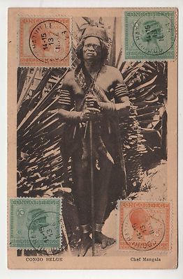 Title (ebay affiliate link): 1923 Belgian Congo, Africa, Chief Mangala, 4 Cancelled Postage Stamps On Front