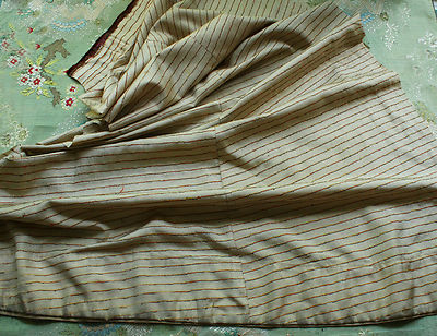 ANTIQUE WOVEN STRIPE SILK TAFFETA DRESS PANEL FRENCH DOLL 38TALL CREAM STRIPE