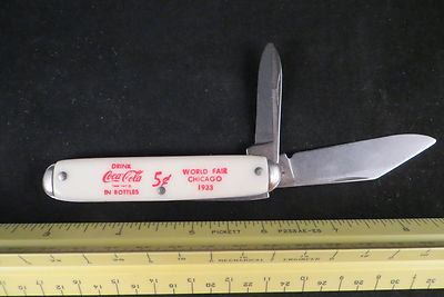 1933 chicago worlds fair pocket knife white coca-cola usa
