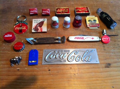 Title (ebay affiliate link): Junk Drawer Lot of Coca Cola Items Thimbles, Knife, Ect
