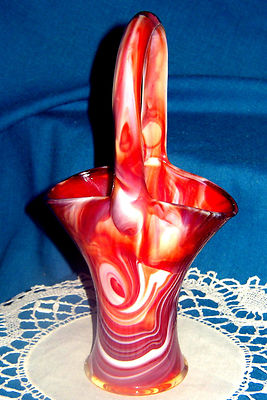Title (ebay affiliate link): DETAIL! 10 1/4" Imperial DARK RED HANDLED Slag GLOSSY BASKET Milkglass NAPPY nr