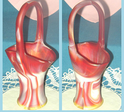 Title (ebay affiliate link): PRETTY! 10 1/4" Imperial DARK RED HANDLED Slag SATIN BASKET Milkglass NAPPY nr