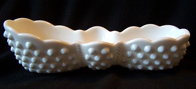 FENTON HOBNAIL WHITE MILK GLASS BOW TIE CANDY DISH