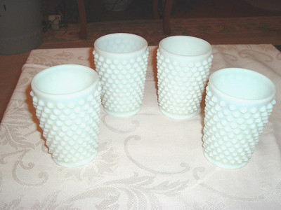 SET OF FOUR REAL MILK GLASS TUMBLERS - HOBNAIL PATTERN