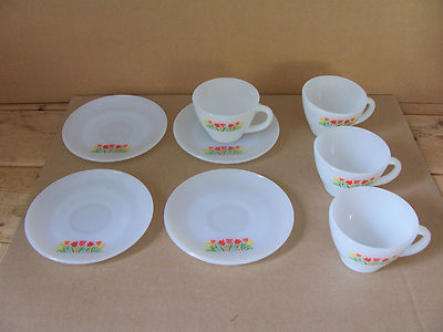 Title (ebay affiliate link): 8 pc Set Fire- King Tulip Pattern Cups & Saucers Milk Glass Anchor Hocking VG+