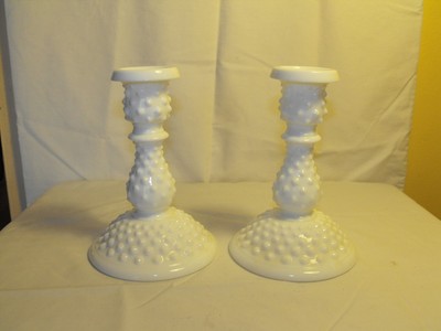 Title (ebay affiliate link): Pair Vintage Fenton White Hobnail Milk Glass 6" Candlesticks