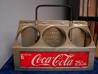 Title (ebay affiliate link): Antique Vintage Coca Cola Bottle Soda Metal Coke 6-Pack Carrier Caddie 1950s