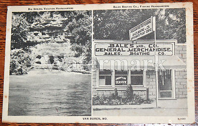 Vintage VAN BUREN, Missouri MO Bales Boating Company Big Springs Postcard