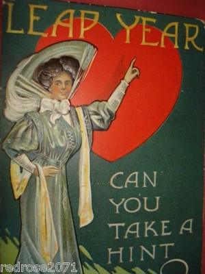 Title (ebay affiliate link): P SANDER OLD Greeting Leap Year postcard Victorian Woman Dressed Fancy Heart