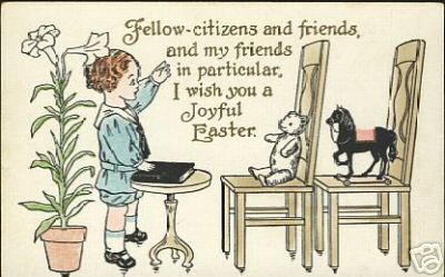 Title (ebay affiliate link): NICE GIRL with TEDDY BEAR & HORSE EASTER POSTCARD-i443