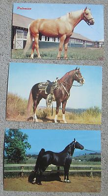 3 HORSE POSTCARDS PALOMINO, CHESTNUT, BLACK