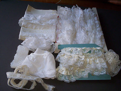 Title (ebay affiliate link): LOT OLD VTG TRIMS TULLE AND BOBBIN LACES PIECES FOR DOLLS BEARS CLOTHS DRESSES