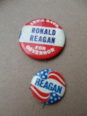 Title (ebay affiliate link): 1966 Ronald Reagan for Governor Button RED WHITE BLUE Lets Back Reagan