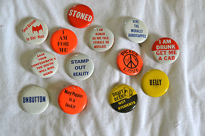 Title (ebay affiliate link): Vintage Lot Vietnam Era Anti War Peace Mary Poppin Batman Stoned Love Belly Beer