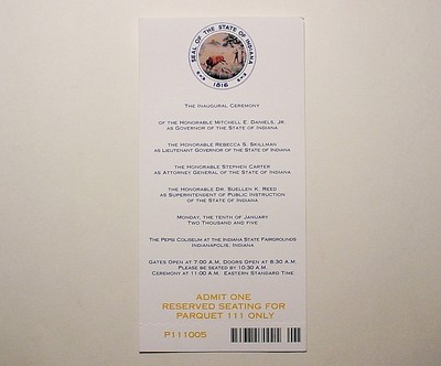 Vintage 2005 INDIANA GOVERNOR MITCH DANIELS INAUGURAL TICKET CEREMONY