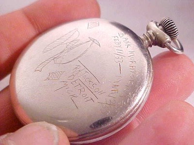 Title (ebay affiliate link): Vintage Hand Engraved Dollar Pocket Watch 1933 Banking Moratorium Crisis