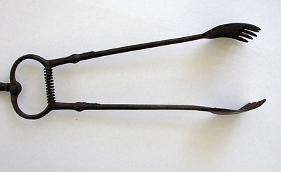 Title (ebay affiliate link): Primitive Antique Black Cast Iron Coal Claw Tongs Fireplace Tool Hand Forged