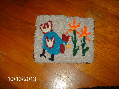 Title (ebay affiliate link): HANDMADE PRIMITIVE CHICKEN AND FLOWERS HOOKED RUG-PRIM