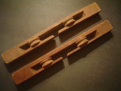 Title (ebay affiliate link): MATCHING PAIR of 2 VINTAGE WOOD CLOTHES LINE WASH PULLEYS 11" LONG