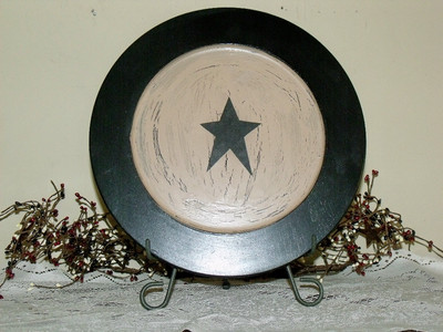 Title (ebay affiliate link): Primitive Country Crackle....Farm House....Large Plate with Display Stand