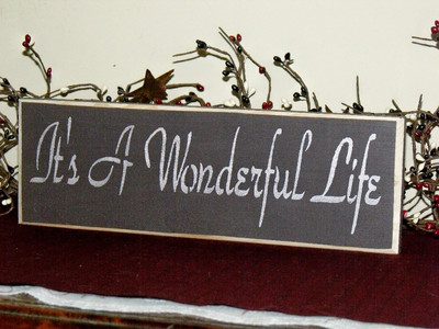 Title (ebay affiliate link): Primitive Country Shelf Sitter Sign...."It's A Wonderful Life"