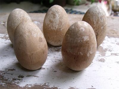 Title (ebay affiliate link): Charming Primitive Vintage Deco Era Hand Made Wood Eggs Bowl Filler Shabby Paint