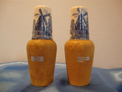 Vintage Delft Blue Porcelain Salt & Pepper Shakers. 4 Tall"