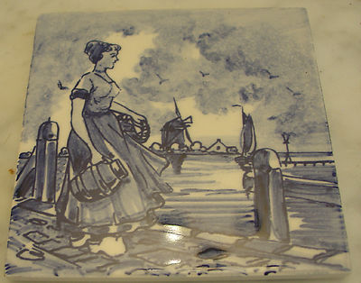 Title (ebay affiliate link): Vintage Blue Delft Holland Netherlands Tile Blue Lady 4" x4" (1960's) NR