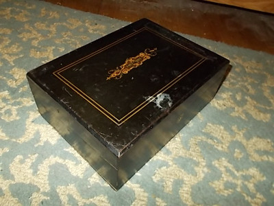 Title (ebay affiliate link): antique 19th century lap desk, lovely painted exterior with red felt