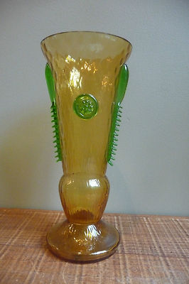Title (ebay affiliate link): Antique Early 20thC Jugendstil Topaz w/ Applied Green Art Glass Vase-Loetz?