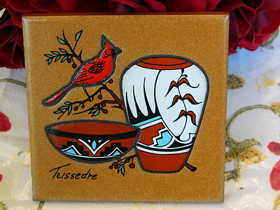 Title (ebay affiliate link): Teissedre Ceramic Tile Navajo Aztec American Indian Cardinal Bird Trivet Coaster