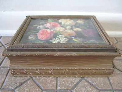 Title (ebay affiliate link): Vintage Antique Cottage Shabby carved wooden hinged box Bird Flower bee print