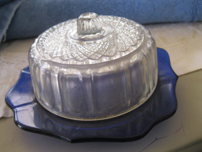 COBALT BLUE BUTTER DISH WITH CLEAR DOME