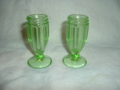 Hazel Atlas green footed salt and pepper shakers w/o caps