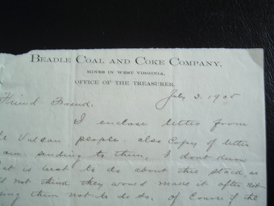 Title (ebay affiliate link): 1905 "West Virginia,Coal Mining"Beadle Coal & Coke Company business letter!