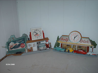 Title (ebay affiliate link): 2 Neat Coka Cola Clocks Drive-in Gas Station Route 66 Hot Rods