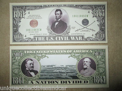 Title (ebay affiliate link): 1861-1865 "Civil War" Commemorative Dollar Novelty Bill - NEW - FREE S/H